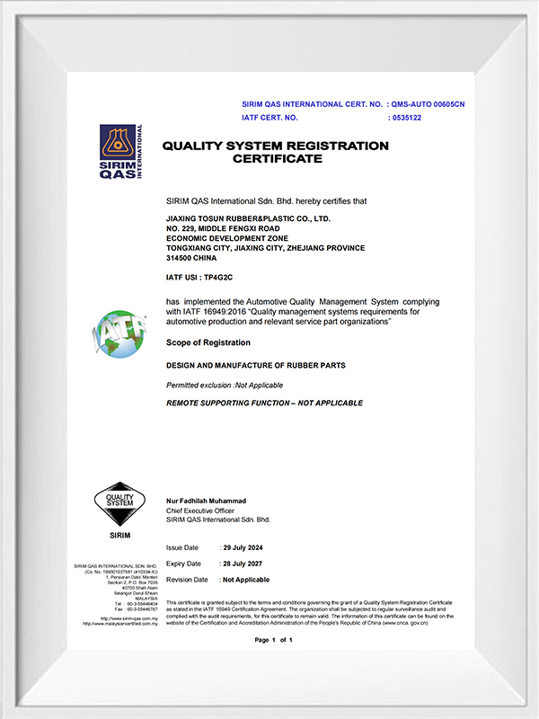 Jiaxing Tosun Rubber & Plastic Co., Ltd., osigurava visokokvalitetnu i učinkovitu opskrbu čvrstim profilima gumene ekstruzije kroz naprednu proizvodnu opremu, rigorozni sustav kontrole kvalitete, snažne proizvodne kapacitete i poslovnu filozofiju usmjerenu na kupca. Bilo da je u pogledu kvalitete proizvoda ili usluga, Jiaxing Tosun je pouzdan partner u industriji. U budućnosti će tvrtka nastaviti podržavati ovu filozofiju i pružiti bolje proizvode i usluge globalnim kupcima.
